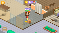 2、拖动女性角色到盒子旁边整理垃圾;