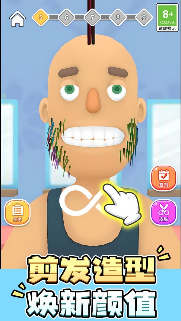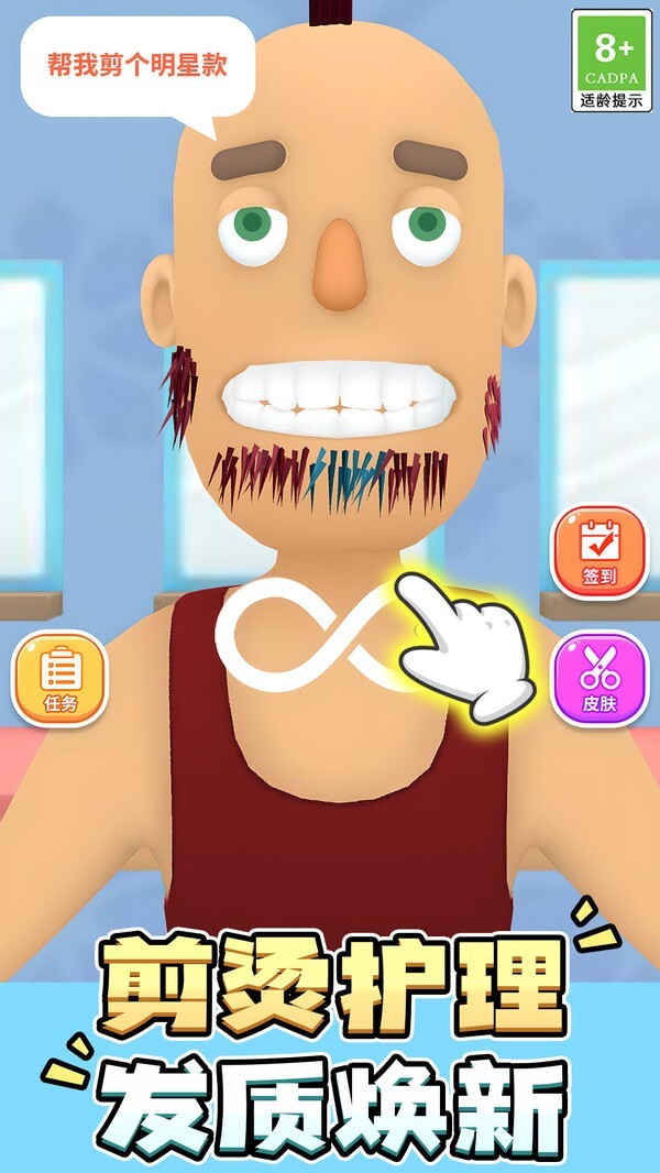 3、多样的道具与皮肤系统,使玩家能够依据自身偏好打造专属的理发场景和角色外观,提升游戏的趣味性与可玩性。