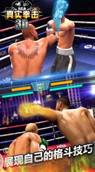 2、真实拳击格斗之王全新引擎操控,配合靓丽真实的拳击赛场氛围。