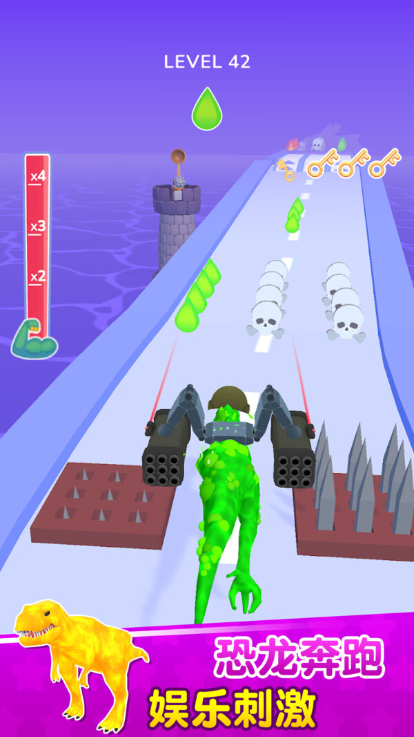 1.进化成长设定:以收集元素为核心机制,恐龙在每一次奔跑进程中都会实现逐步进化,其外观形态与能力属性将同步得到提升,带来强烈的升级体验感。