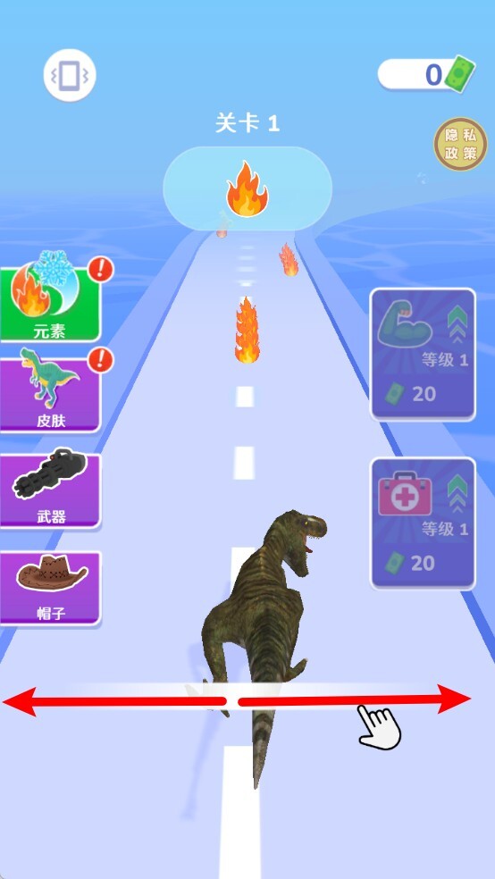 3. 通过左右滑动屏幕来操控恐龙切换跑道,既要巧妙避开各类障碍,又要精准收集所需元素,保持稳定的操作节奏是恐龙成功进化的核心要点。