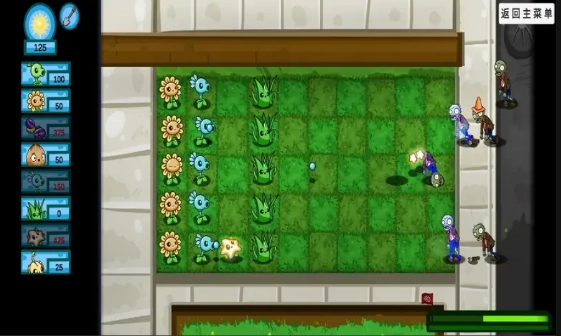 3、合理的利用植物,让这些僵尸变得无用武之地吧,这样可以有效的减缓僵尸的攻势。