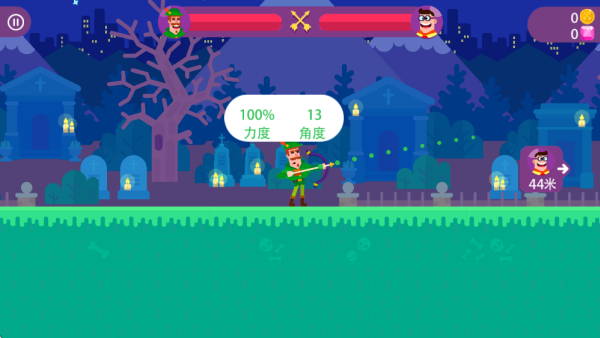 1.这款游戏打造出一个色彩鲜亮的卡通世界,玩家将化身箭术达人,在各式各样的场景里和对手一较高下。