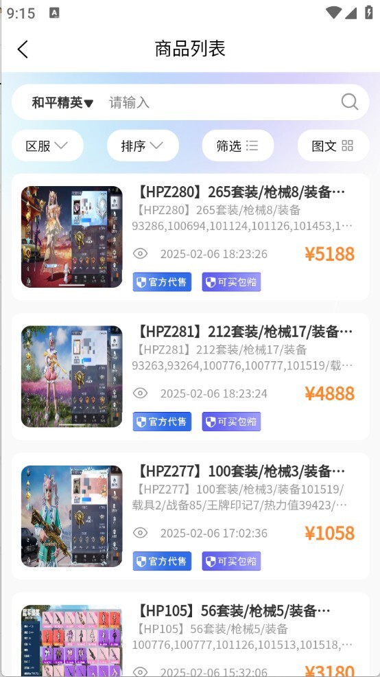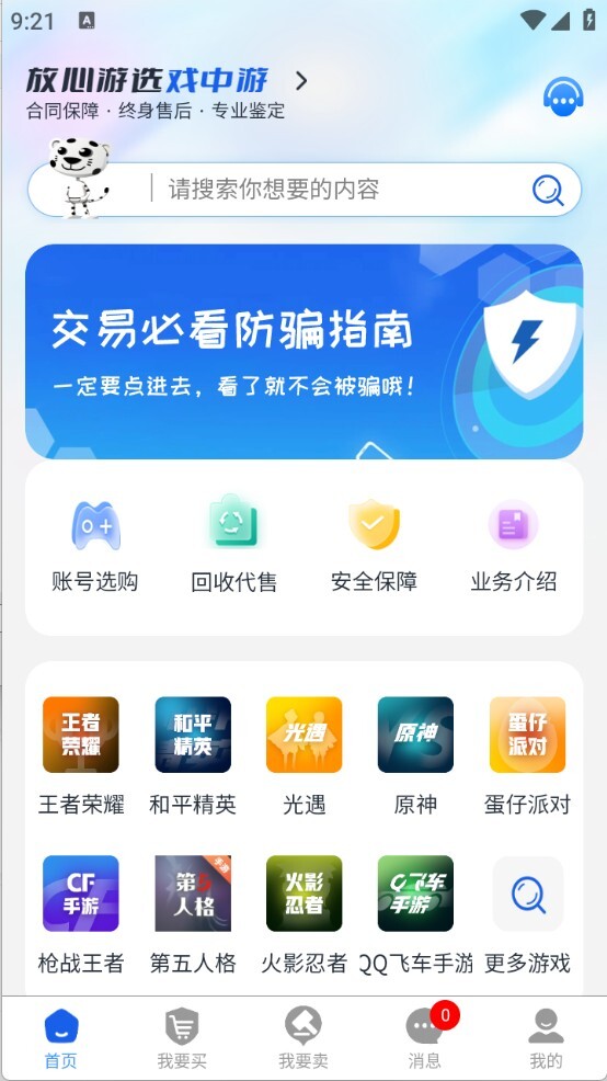 进入首页后,首页上展示着众多游戏账号,包括王者荣耀、蛋仔派对和和平精英等。