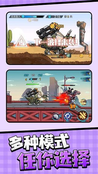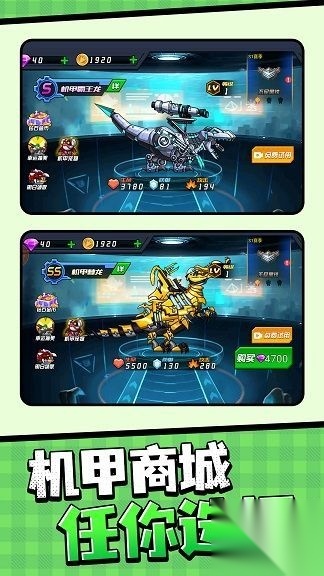 2.玩家需要操控恐龙机甲,与对手展开激烈的对决。