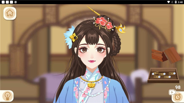 5、接着先插上发簪,再将蓝色花朵贴到指定位置就完成了。