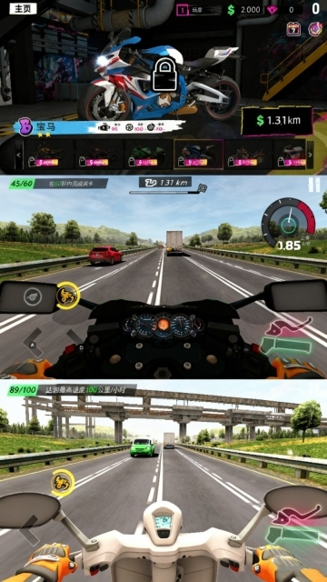1、每天登录后可以先去完成签到任务获取钱币,等积累到足够的资源时,再解锁新的摩托车。