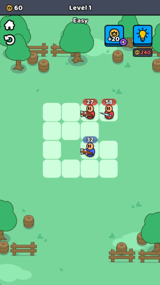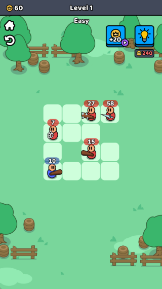 《权力之路》是一款策略闯关类型的游戏。当你进入关卡后,会看到包括自己操控的角色在内,所有角色的头顶都标注着数字——数字更大的角色可以击败并吞噬数字更小的角色,这便是游戏的核心战斗规则。玩家需要遵循这一规则排兵布阵,让己方角色不断战胜等级更低的敌人,以此提升自身等级,最终目标是消灭关卡内的所有敌人!
