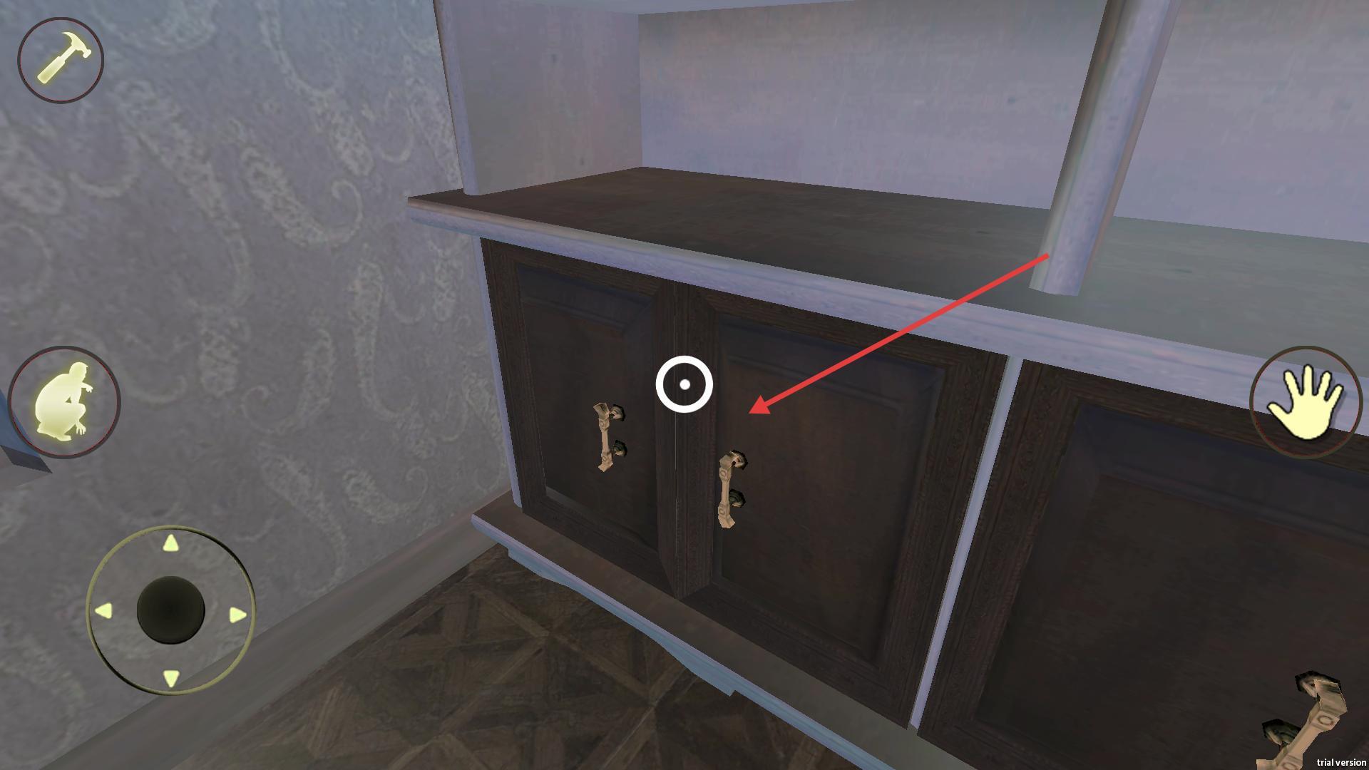 2、发现无法打开后,走到橱柜旁边,点击橱柜的柜门,查看里面的空间,找找有没有可用的道具或者线索。