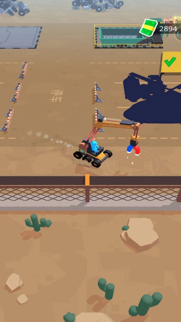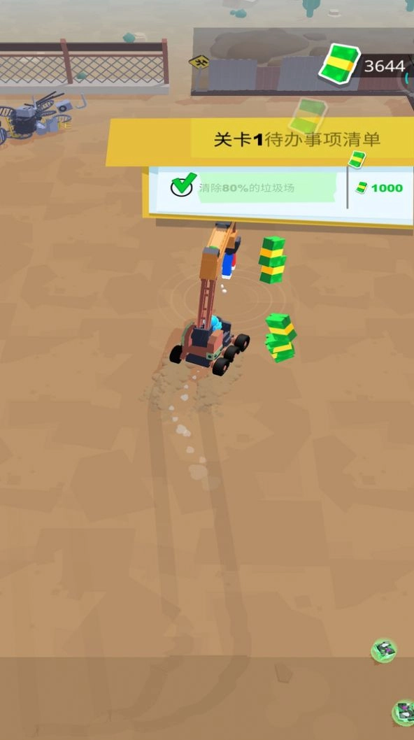 2、驾驶蜇挖掘机,自由挑战不同的垃圾清理任务,赚取收益;