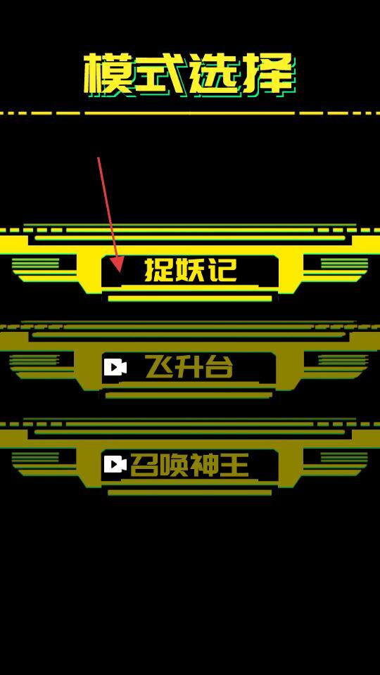 2、进入模式选择界面后,会看到捉妖记、飞升台、召唤神王等选项,选择并点击捉妖记模式,即可进入该玩法对应的关卡场景。