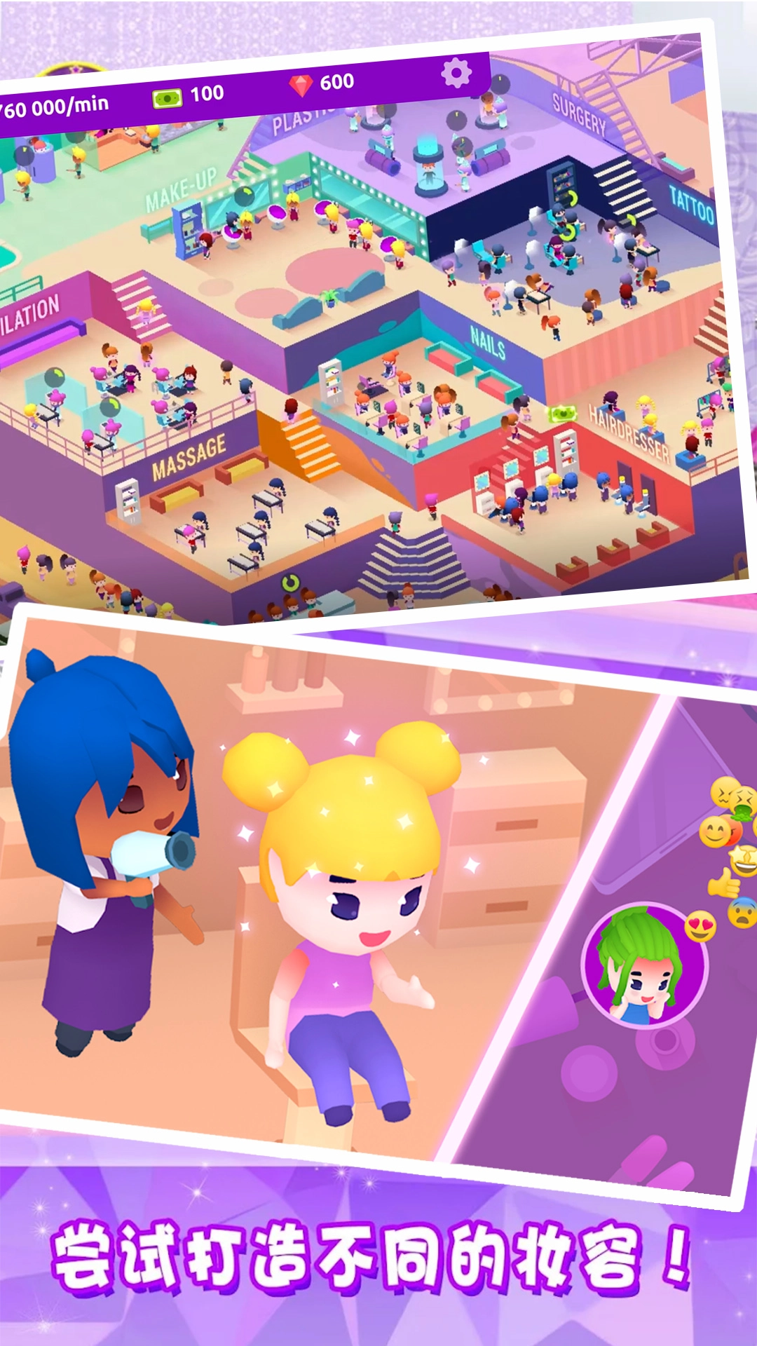3、高清画质,体验沉浸式美容沙龙吧!升级我们的沙龙,获得特别的升级和更多的产品。