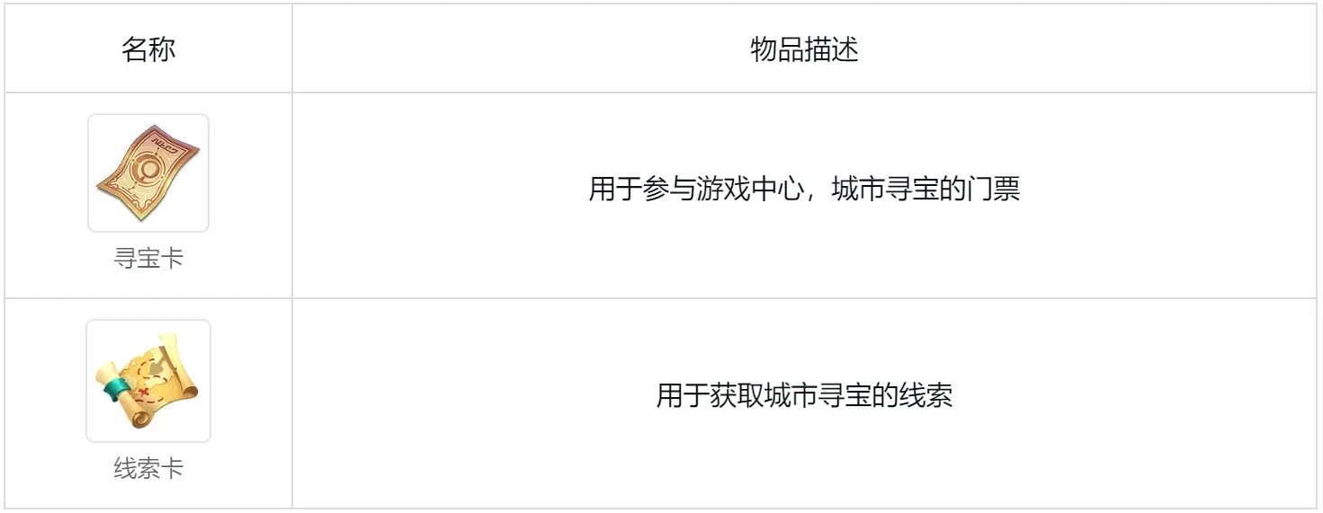 游戏中心:【户外寻宝】活动需凭寻宝卡与线索卡参与。