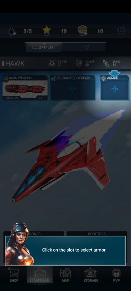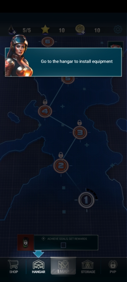 1、打开红色狩猎最新版本游戏,进入后点击【hangar】飞机库,前往机库进行设备安装