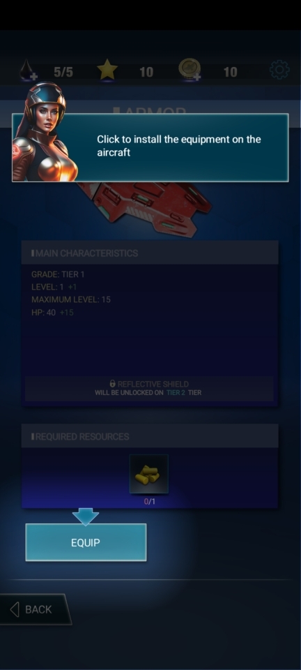 4、点击【equip】设备将其安装在飞机上