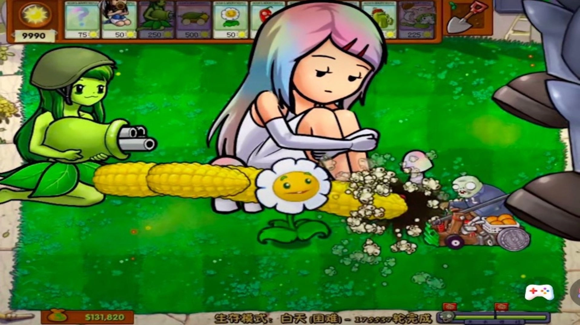 2、拟人化的手法,这里的植物成了萌系的少女,解锁武器去战斗。