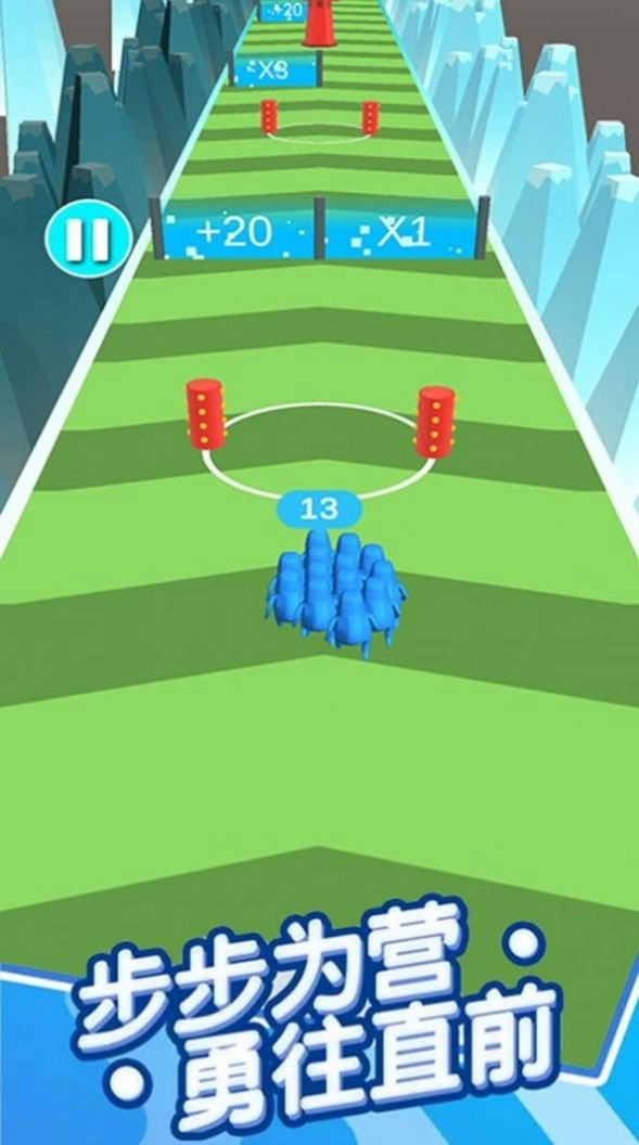 2、操控你的小人沿途冲刺,聚集更多人群,进入增益门口;