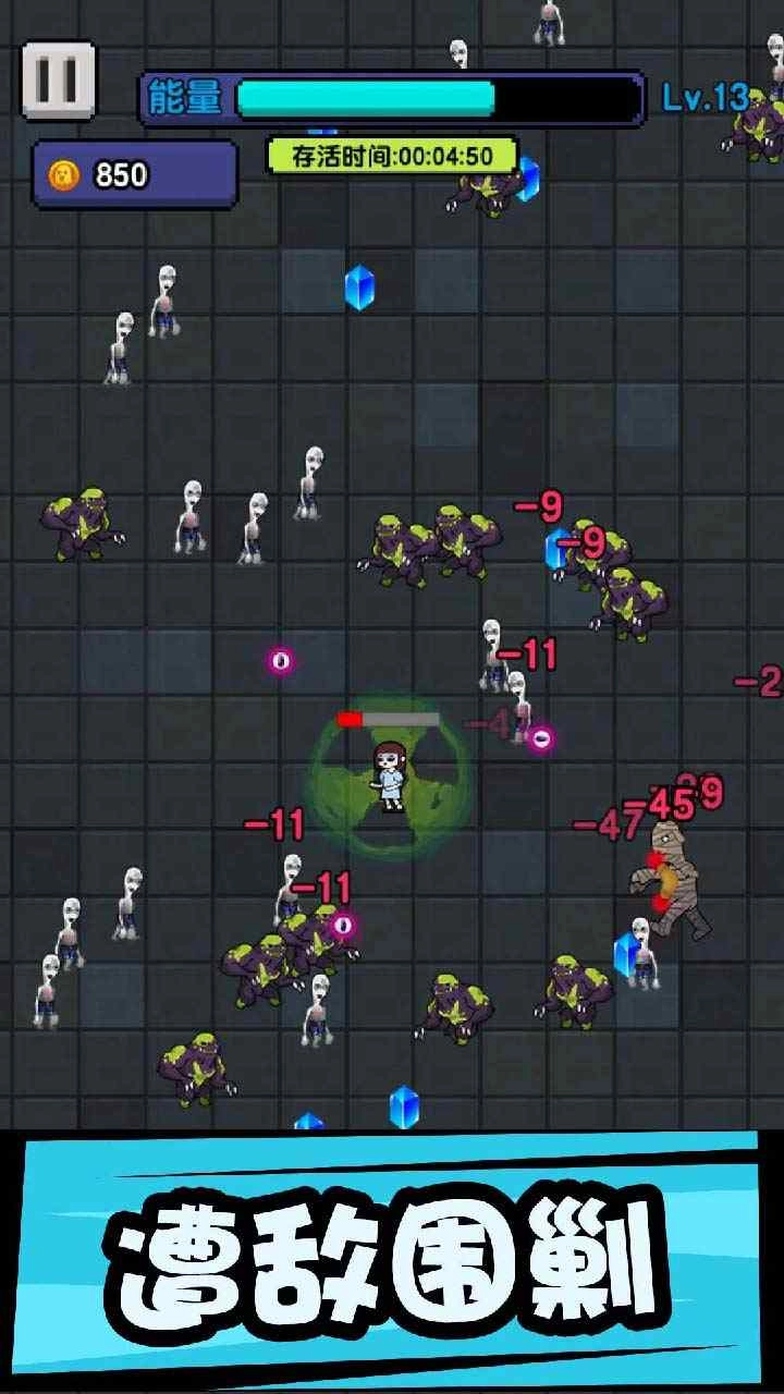 躺平打怪游戏是一款好玩有趣的动作割草类游戏。面对怪物的猛烈攻击你能够坚持多久的时间?通过击败怪兽收集资源来升级你的武器学习更多的技能,通过不同的技能体系能够玩出非常多不同的花样,如果我们能够成功存活到时间结束就能够成功闯关,如果在时间截至我们的生命值耗尽,那么闯关就失败了!