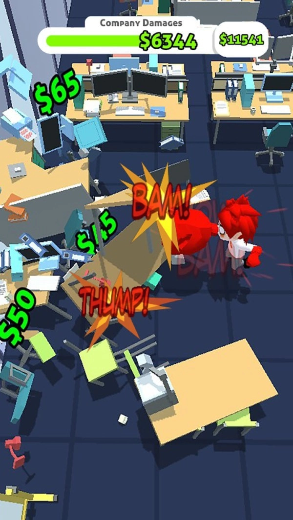 打工人大作战游戏是一款趣味十足的动作格斗类游戏,这款游戏的的玩法非常的具有创意,玩起来非常的解压,在这款游戏中你可以尽情的释放你在工作中的压力,在游戏中你是一名打工人,在办公室里尽情的使用你的拳头来破坏这里的一切,你的破坏程度越高,奖励也就会越高哦。