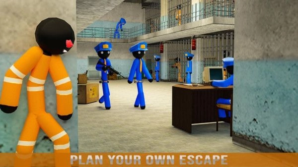 火柴人监狱逃脱游戏是3D火柴人在监狱中想要逃离的解谜冒险游戏。这里监狱的警察很多,每时每刻都在巡逻,一刻都不会放松。游戏中需要找到他们放松的时间,这样只要找到工具抓住机会,就能快速的挖掘线索,利用各种道具逃离现场。