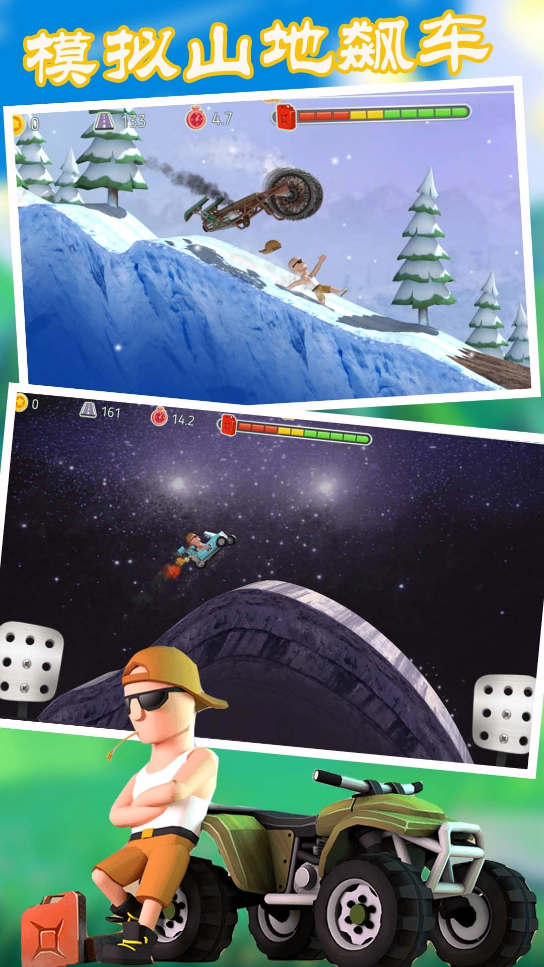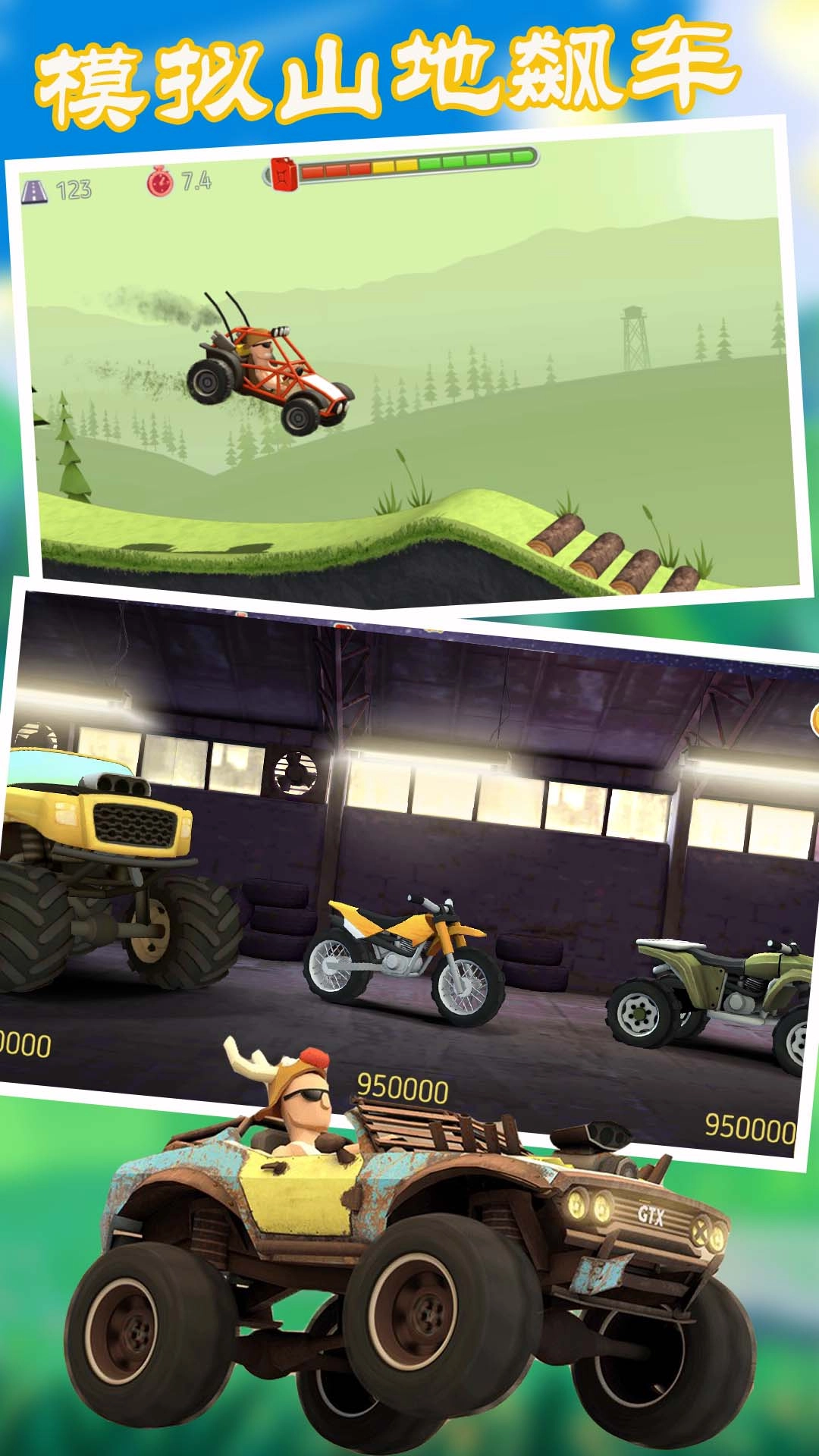 模拟山地飙车是一款采用全新的真实物理引擎打造的山地赛车登山类游戏,丰富的关卡设计,多样的赛车模型,在游戏的过程中,玩家需要把握调控好自己赛车的性能,在物理引擎的影响下,翻车或者是摔落是非常常见的事情,其次种类非常丰富的关卡以及车辆的解锁,让玩家在游戏中的每一次尝试都是新奇无比的。