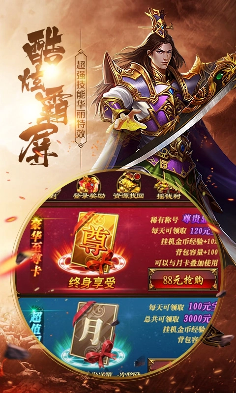 2、带你感受非一般的热血激战对决,经典战法道三大顶级职业带你飞,炫酷热血屠城,红名野外PK,给你最震撼的史诗级对决,指尖微操,以一敌百!