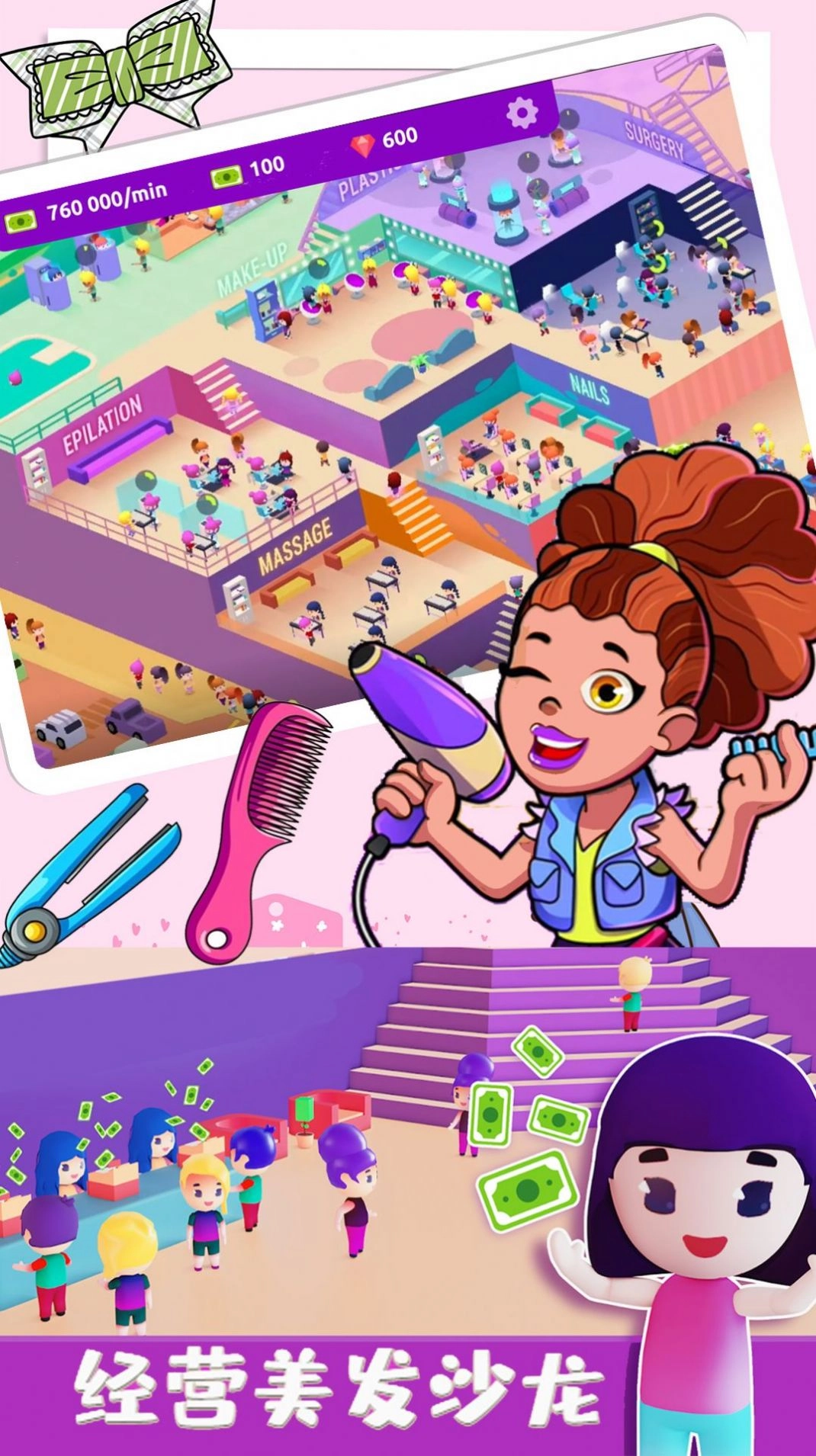 公主的美发沙龙游戏是一款放置经营模拟游戏。快来经营你的美发沙龙为你的客人打造各种各样的美发造型,轻松趣味的放置玩法,可以不断扩大你的美发沙龙空间,解锁更多的美发项目,招募更多的发型师,这样才能够让客人无需长久等待,充满了趣味的玩法,为你带来更多不一样的体验。