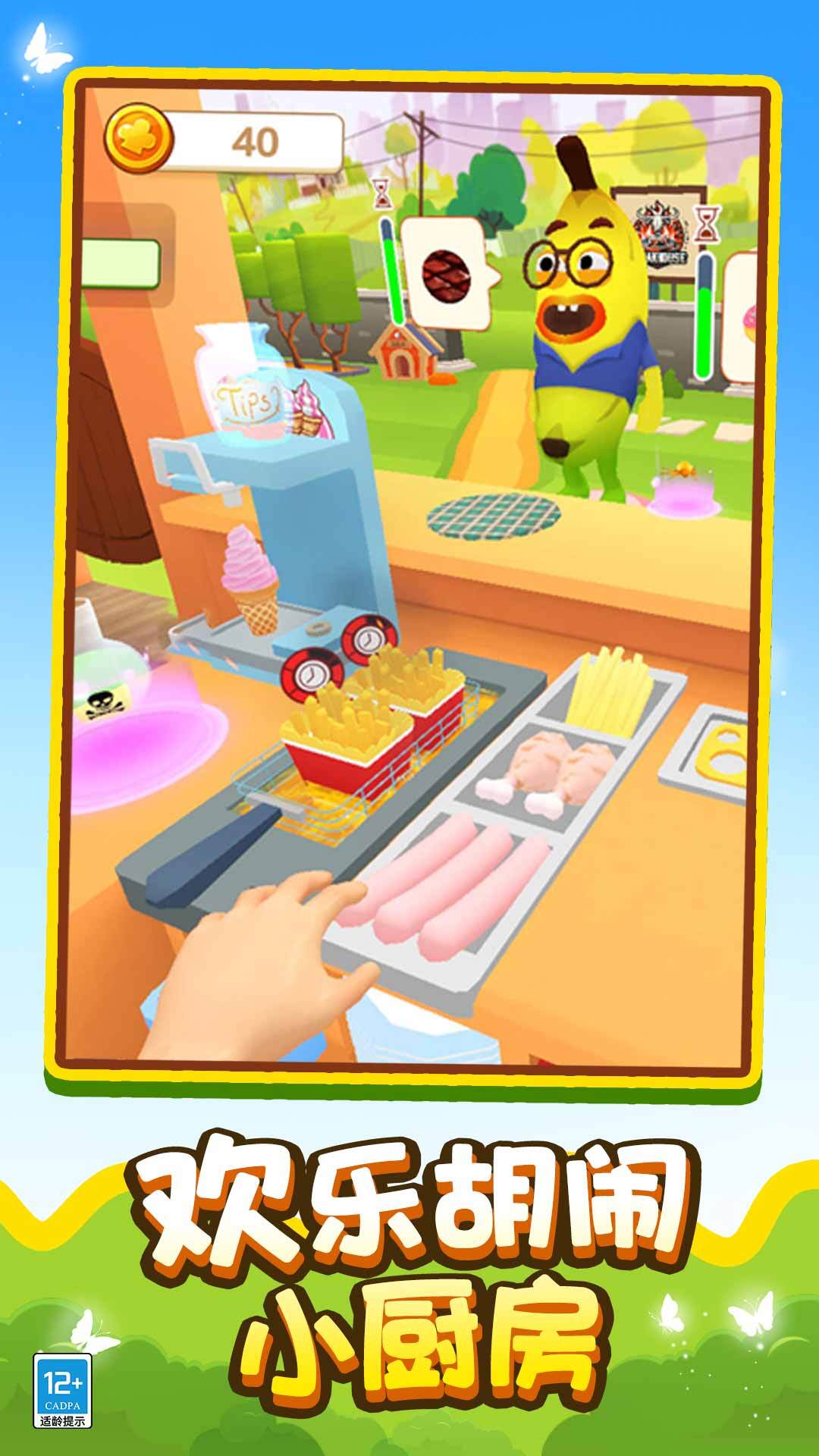 2.以现代化的快餐厨房作为背景,借助精细的建模手段呈现各类厨具设备与新鲜食材,打造出既真实又充满童趣的烹饪场景。