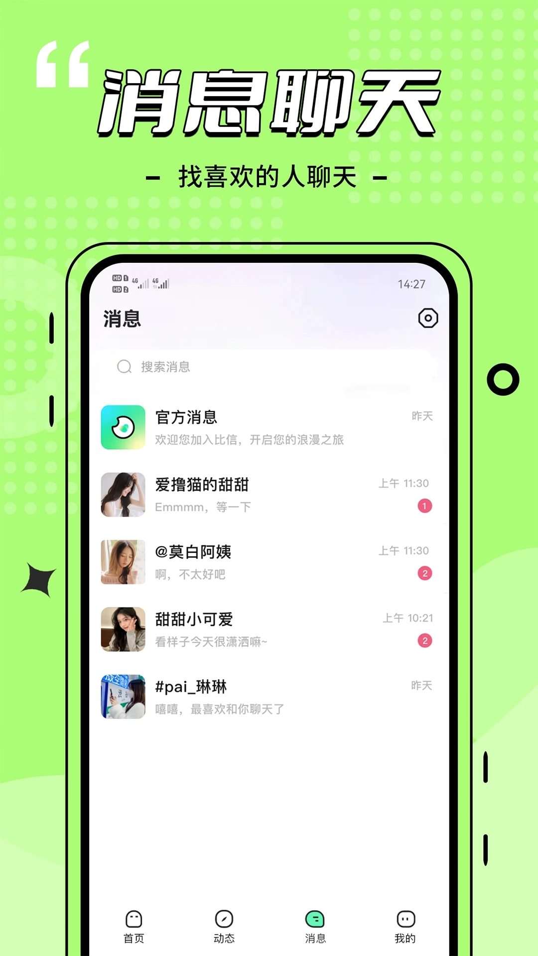 比信约玩是一款主打真实网络交友的社交聊天平台,不仅聊天功能完善,社交娱乐活动也十分丰富有趣。平台采用多种简单又独特的社交游戏形式,让用户能轻松开启交友体验。这里所有交友用户均为真人注册,绝无虚假账号参与互动,每天都会更新大量优质的异性单身资料,还有丰富的心动单恋推荐机制。在比信约玩上,交友聊天操作便捷、流程简单;感兴趣的朋友可别错过这款实用的社交工具。