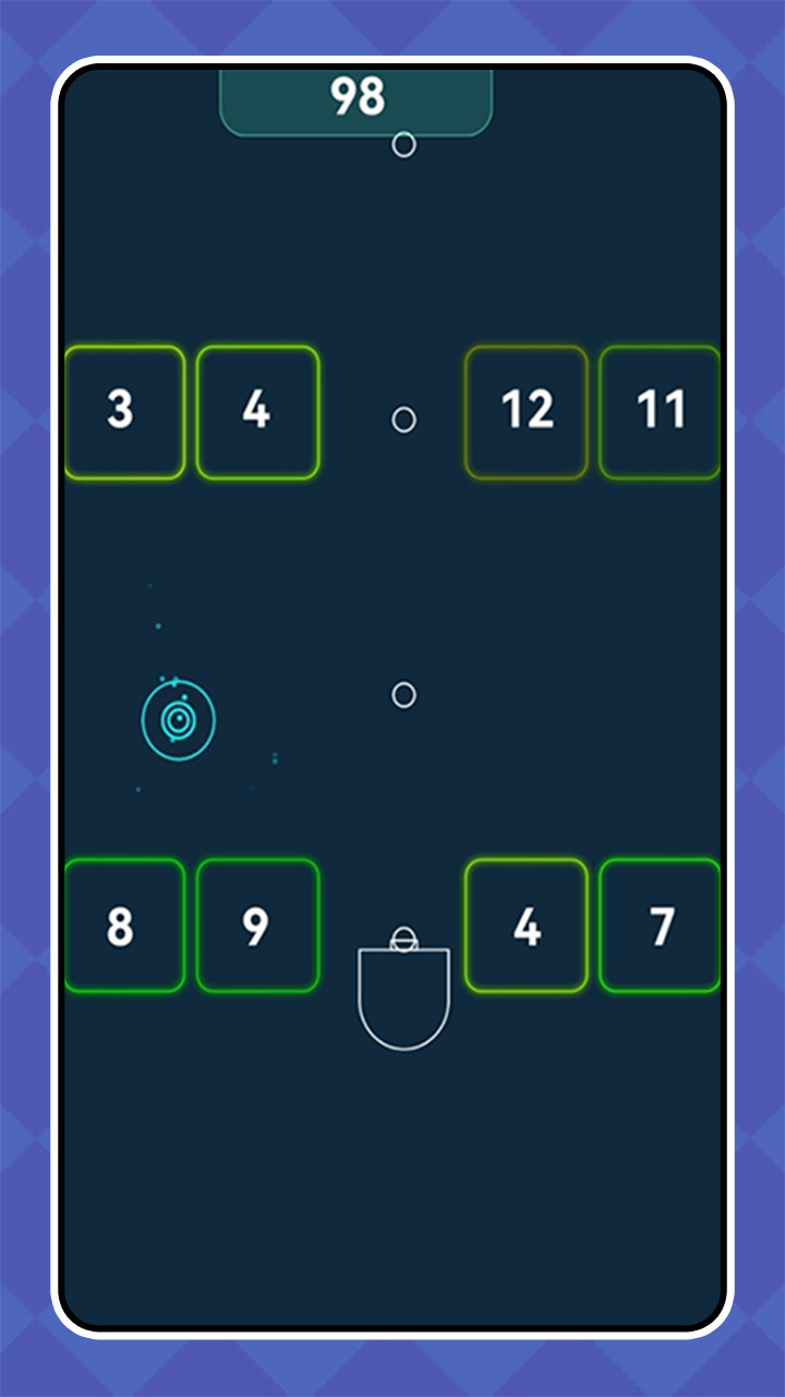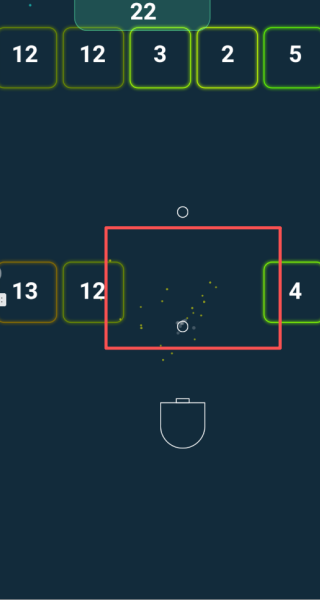 1、操控下方的发射装置调整角度,持续朝场景上方的数字方块射击,开启消除障碍的核心挑战。