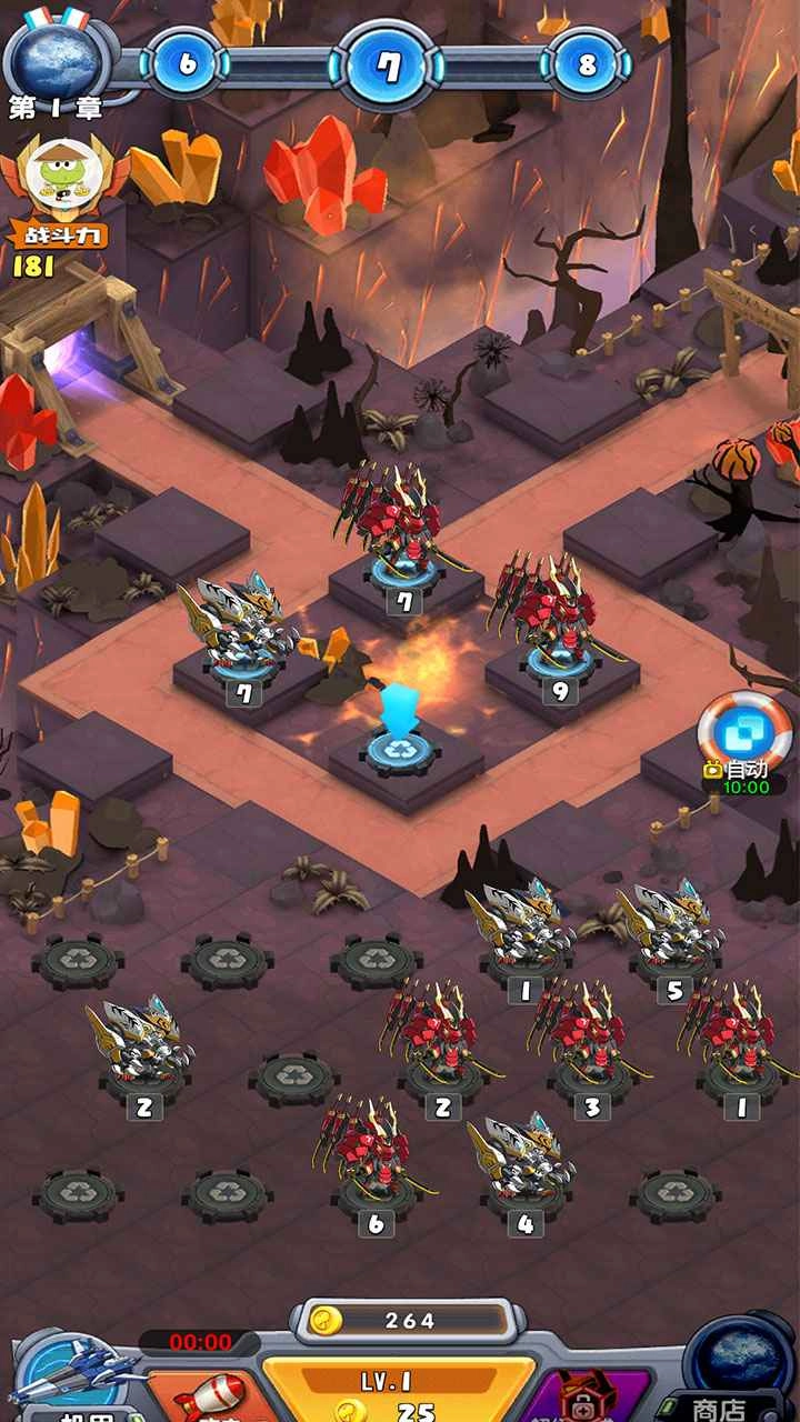 玩家可以合成和升级不同种类的机甲炮塔,提升防御能力和攻击力。