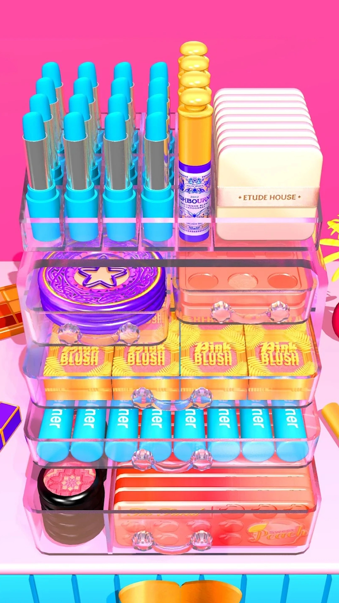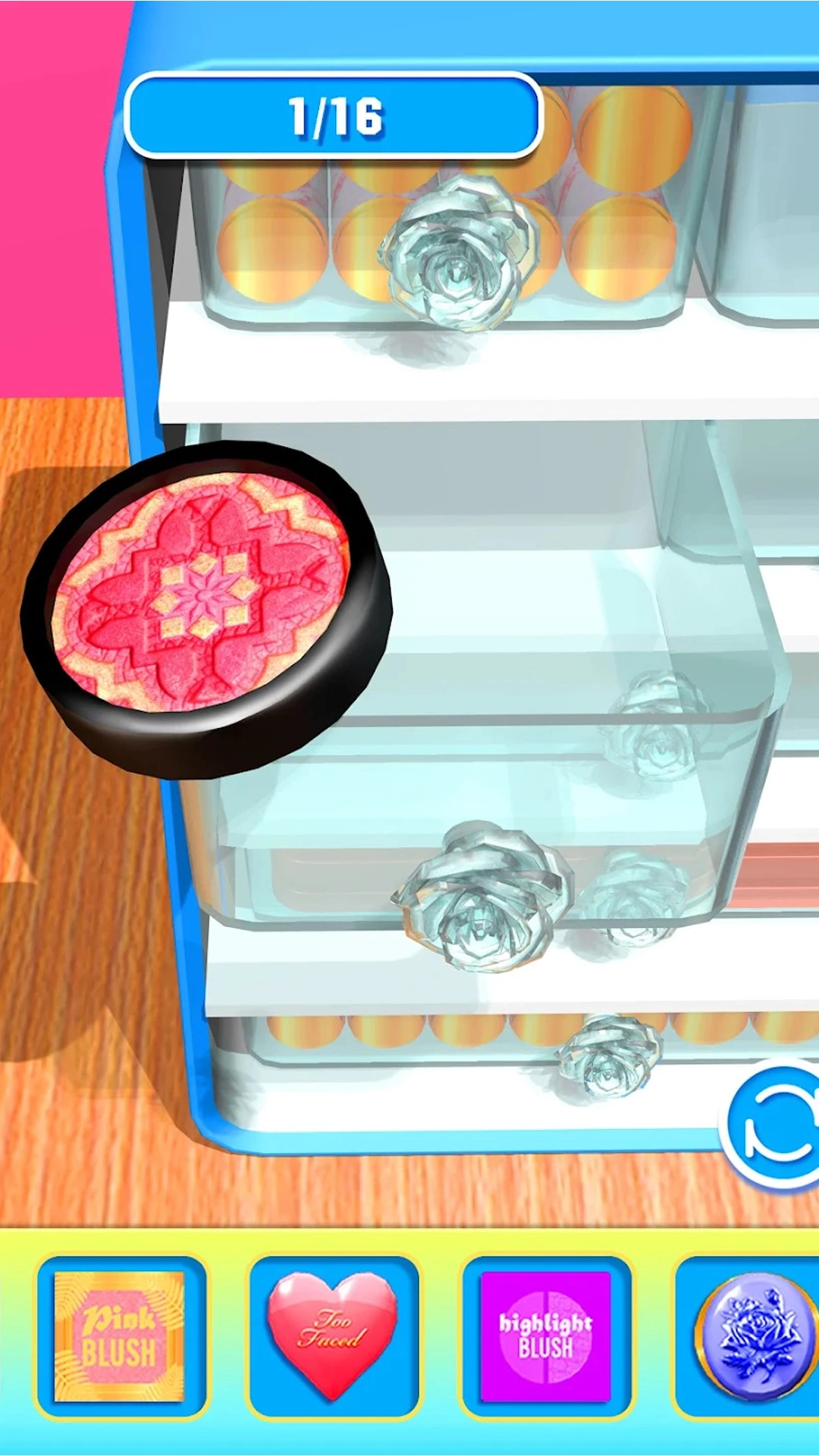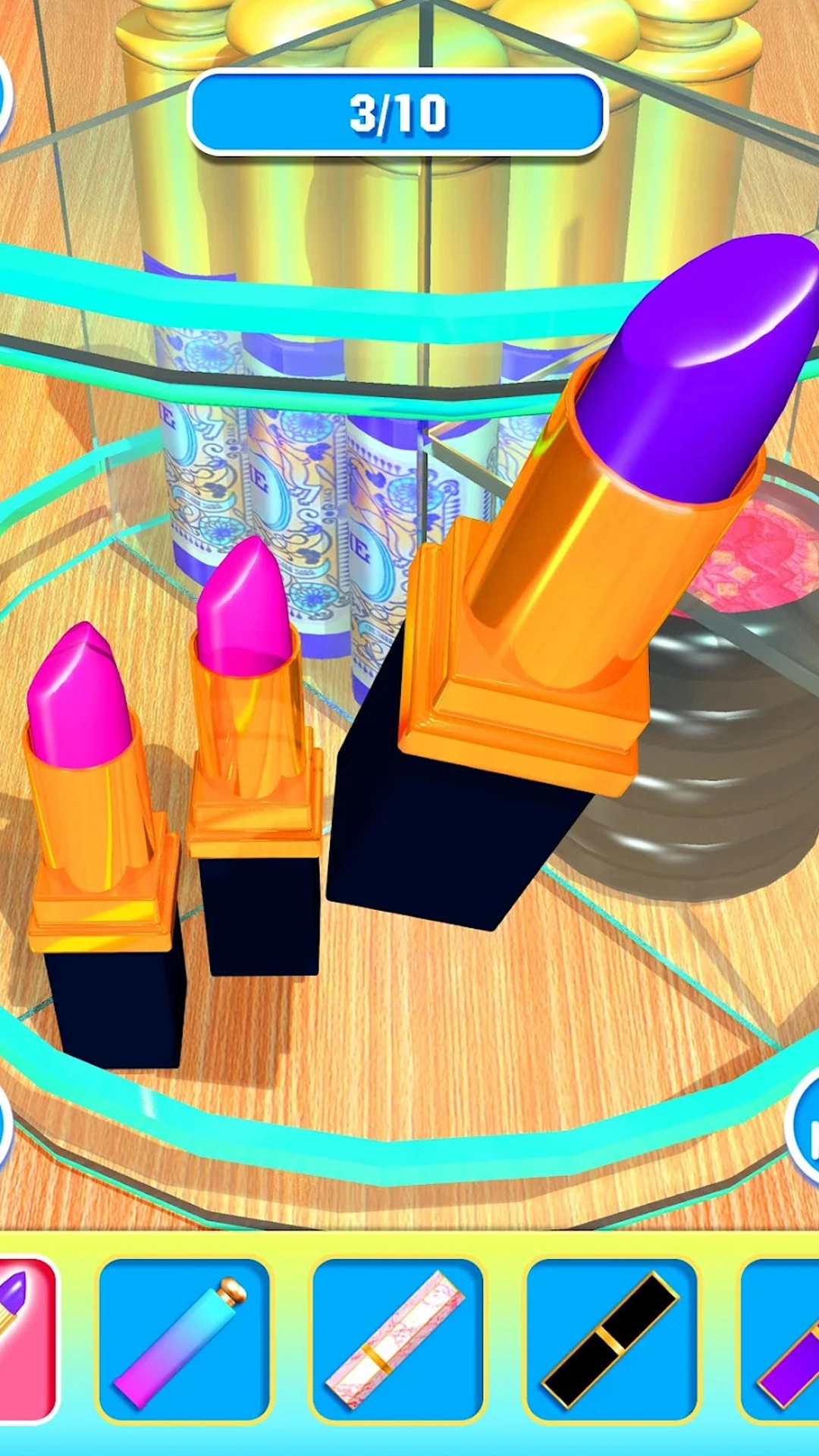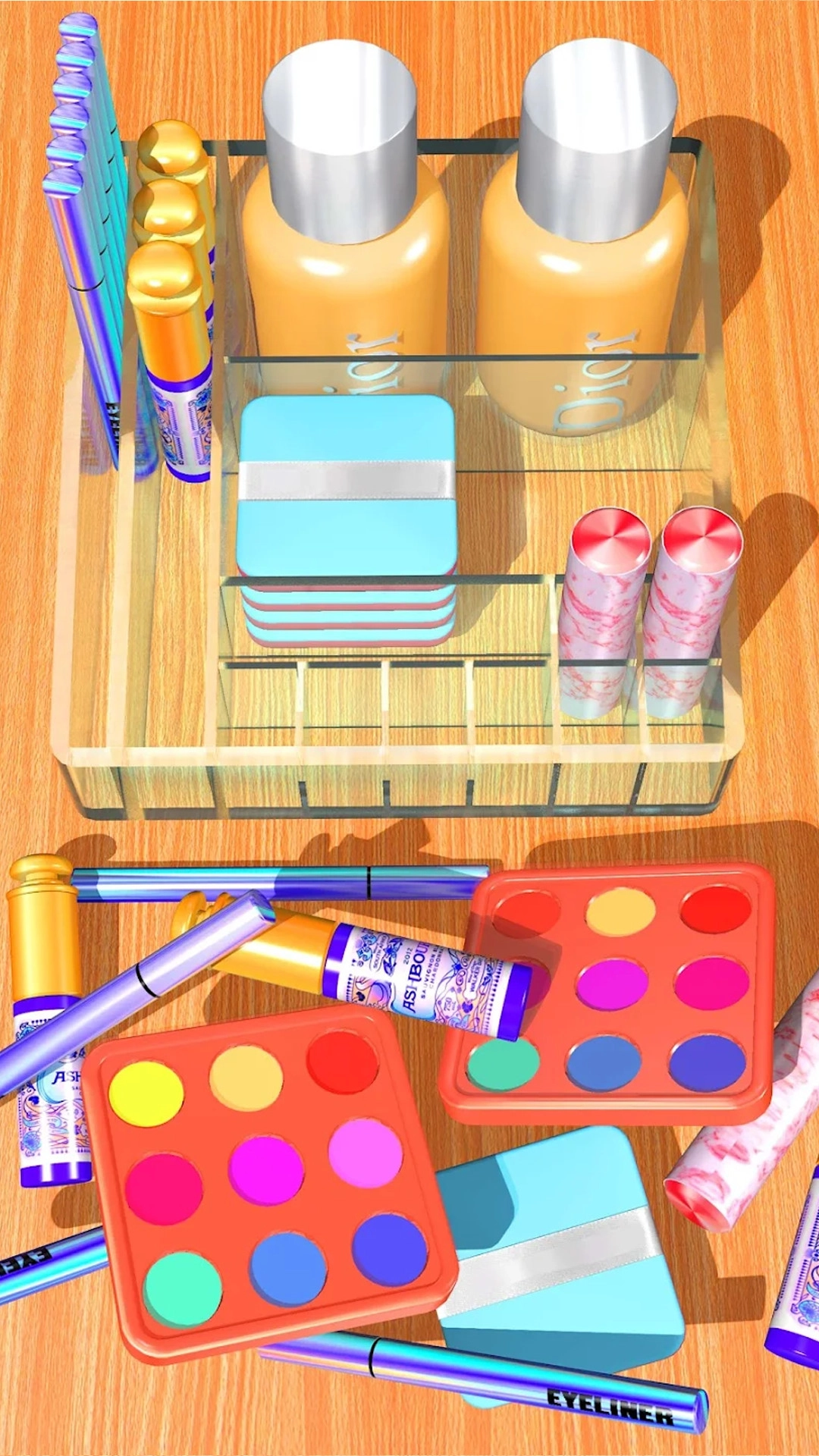 收纳整理大师游戏是一款玩起来非常轻松的趣味,杂乱无章的化妆台需要你去整理一番,将眼影笔、睫毛膏、精华水等物品放到合适位置,保证整个化妆台的干净整洁,只要你按规定完成指定任务,之后便可得到自己心仪许久的奖励啦!