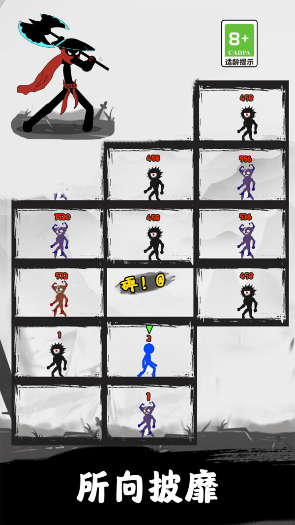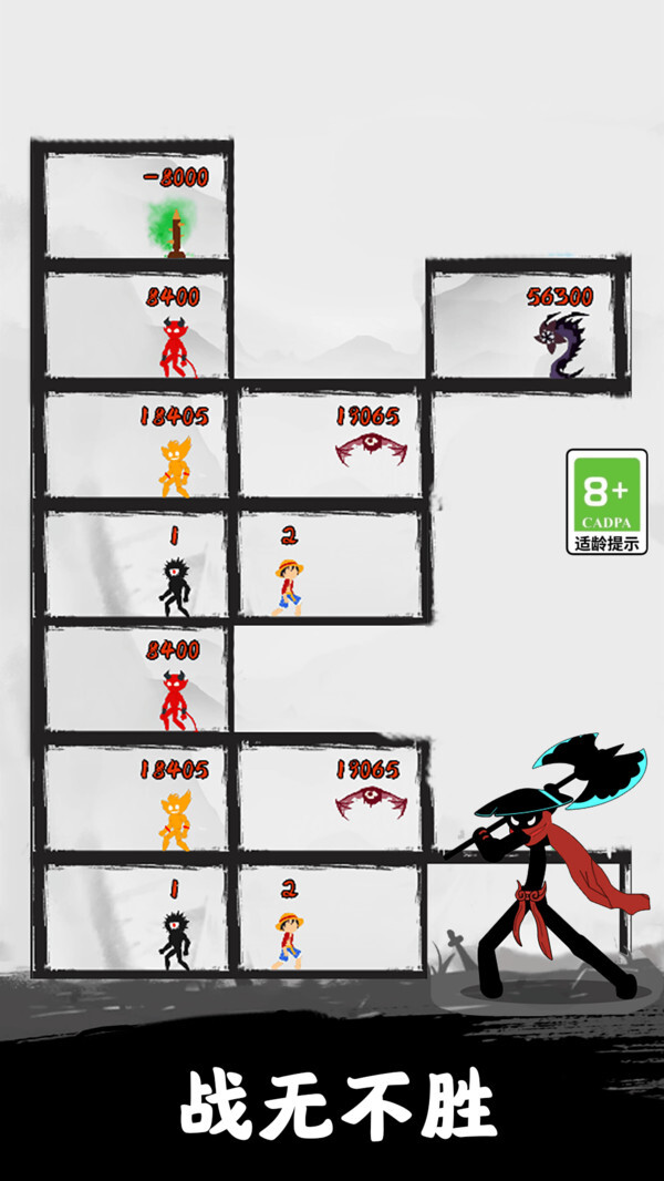1、点击选定火柴人角色后,直接指定攻击目标,系统便会自动完成战斗流程,角色也能随之获取经验并升级。