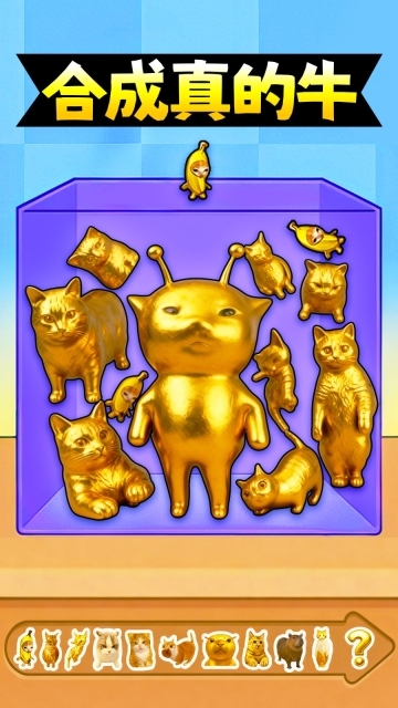 合成真的牛游戏是一款主打表情包的创意合成类游戏,玩家只需把同类型的魔性表情拼合在一起,就能慢慢解锁更稀有、更逗趣的全新表情样式。游戏从基础的香蕉猫起步,玩家能在简单易懂的操作里感受表情包持续进化的趣味,最终要合成出全网难得一见的终极神猫,尽情享受收集与合成带来的双重满足感。