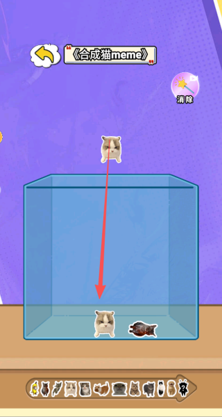 1、长按屏幕并拖动小猫,可控制其下落的最终位置,需为每只小猫规划合理的落点布局。
