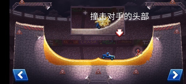 3、通过灵活操控左右移动,精准撞击对手的车头,尽情体验沉浸式的碰撞快感。