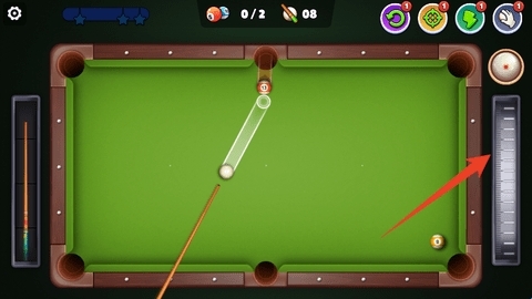 3、上下滑动屏幕右侧的进度条,就能调节击球的方向角度。