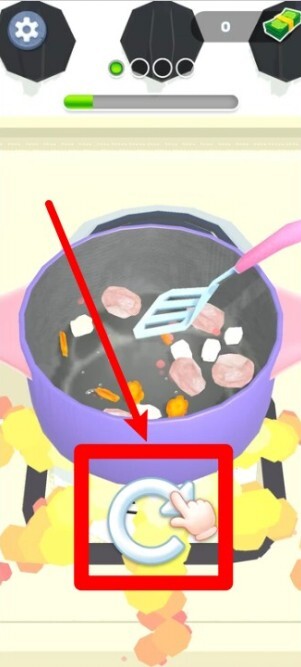 1. 翻炒料理操作:点击圆形手势图标来翻动锅内的食材,这样能保证每一块食材都受热均匀,避免炒焦。