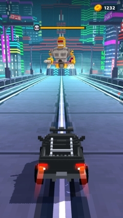 2、在赛道中灵活移动,躲避危险,前往最后的关卡。