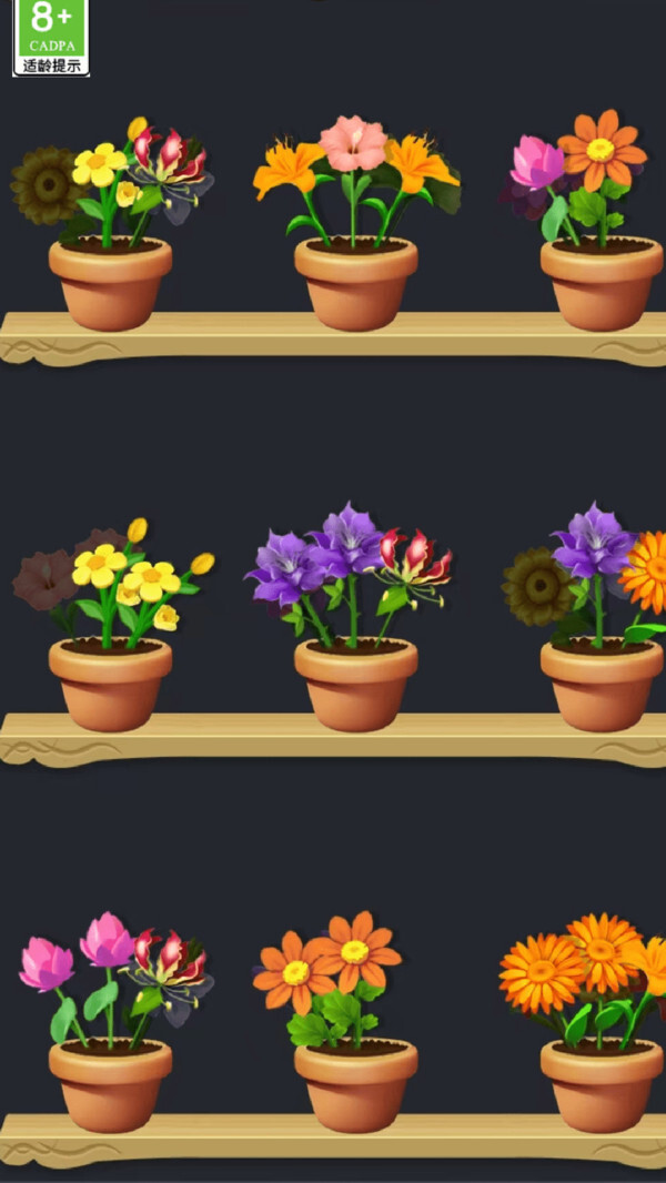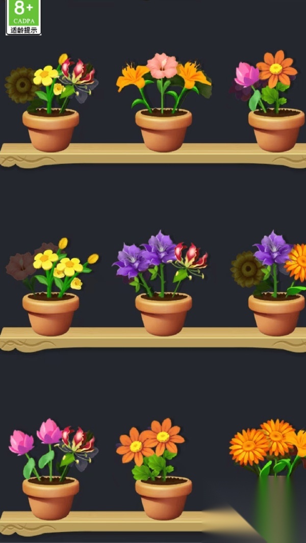 把两盆一模一样的花卉合并起来,就能获得更高级的花卉,让自己的花卉图鉴变得越来越丰富。