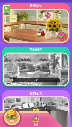 1、玩家可通过合成花卉、完成装饰任务来获取经验值并提升等级,游戏内设有丰富多样的玩法内容。