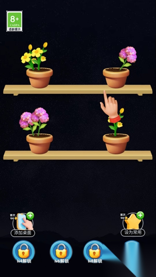 2、沉浸在花的海洋里,简单轻松的模式下能让你每天都不间断地玩耍,不过关卡会逐渐增加难度,花朵消除也会变得越来越有挑战性。