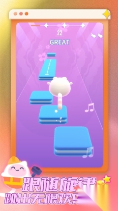 3、结合动态光影与粒子特效,跳跃轨迹会依据音高变化呈现出不同色彩的绽放效果。