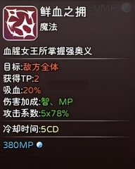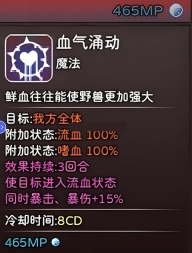 这是我个人很喜欢的AOE技能,伤害比风雷更高,美中不足的是没有附带负面效果,不过一个技能就能回满生命值和魔法值。