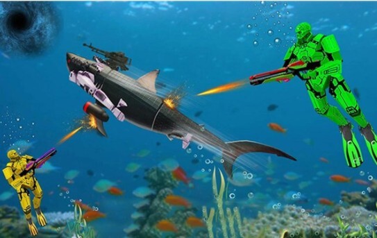在这款游戏里,核心玩法是动作射击,玩家能够操控自己的机械鲨鱼前往深海世界进行捕猎。
