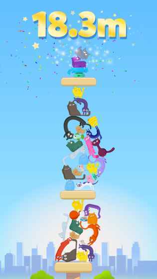 来挑战猫咪堆叠吧!每成功堆起一只就能升级攒经验,你有信心一次性叠满五只猫咪吗?