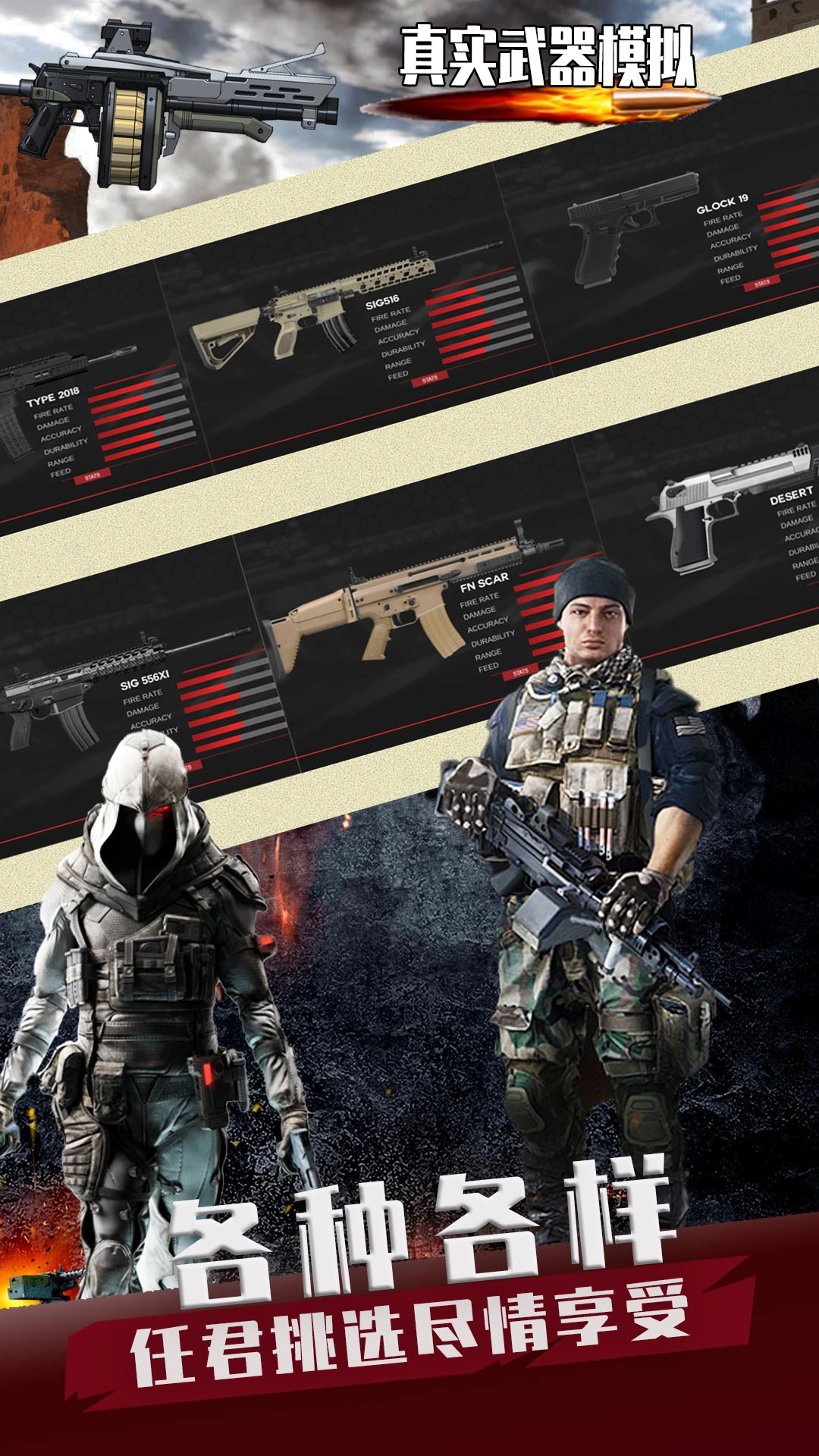 2、画面感非常真实的枪械模拟射击游戏,游戏中拥有世界各种的枪械武器。