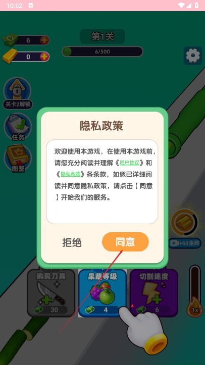 3、然后点击屏幕切菜即可