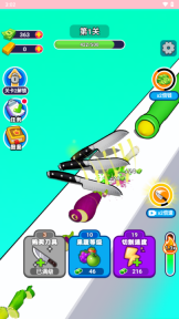 2、当积累了足够的资源后,就能够前往游戏商店选购更厉害的菜刀,以此提高切割的速度与精准度。