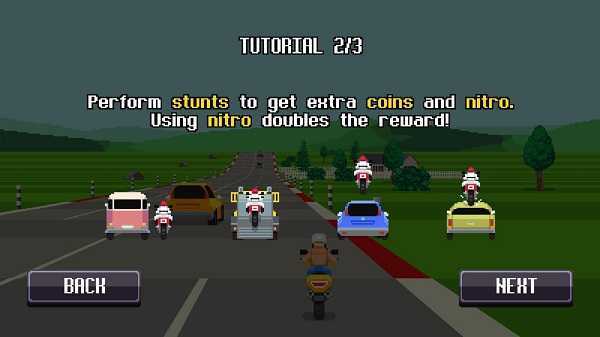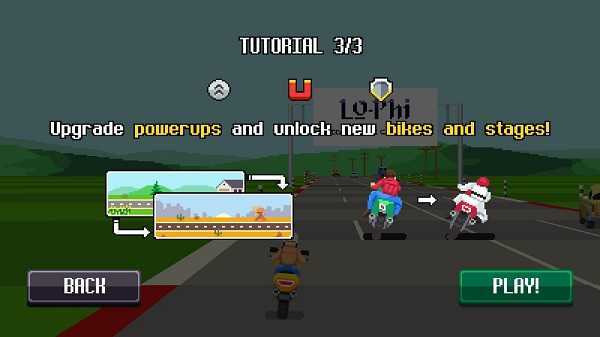 2、像素摩托车安卓版运用经典像素美术风格,配合怀旧电子音效,精准还原复古赛车游戏的视觉与听觉感受。